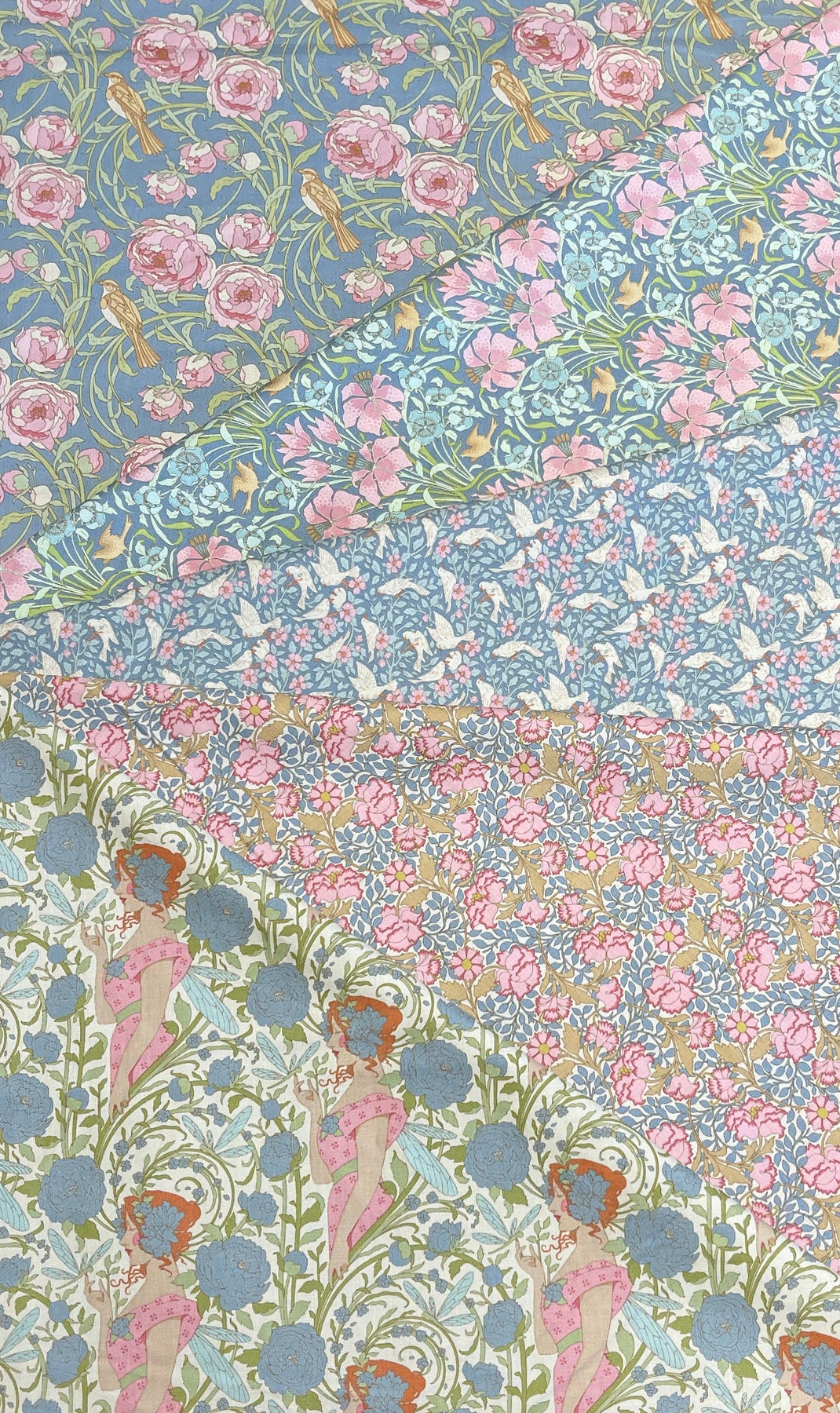 Tilda Songbird - 300254 - Fat Quarter Bundle - Blue - 5 Pieces - 19.5" x 21"