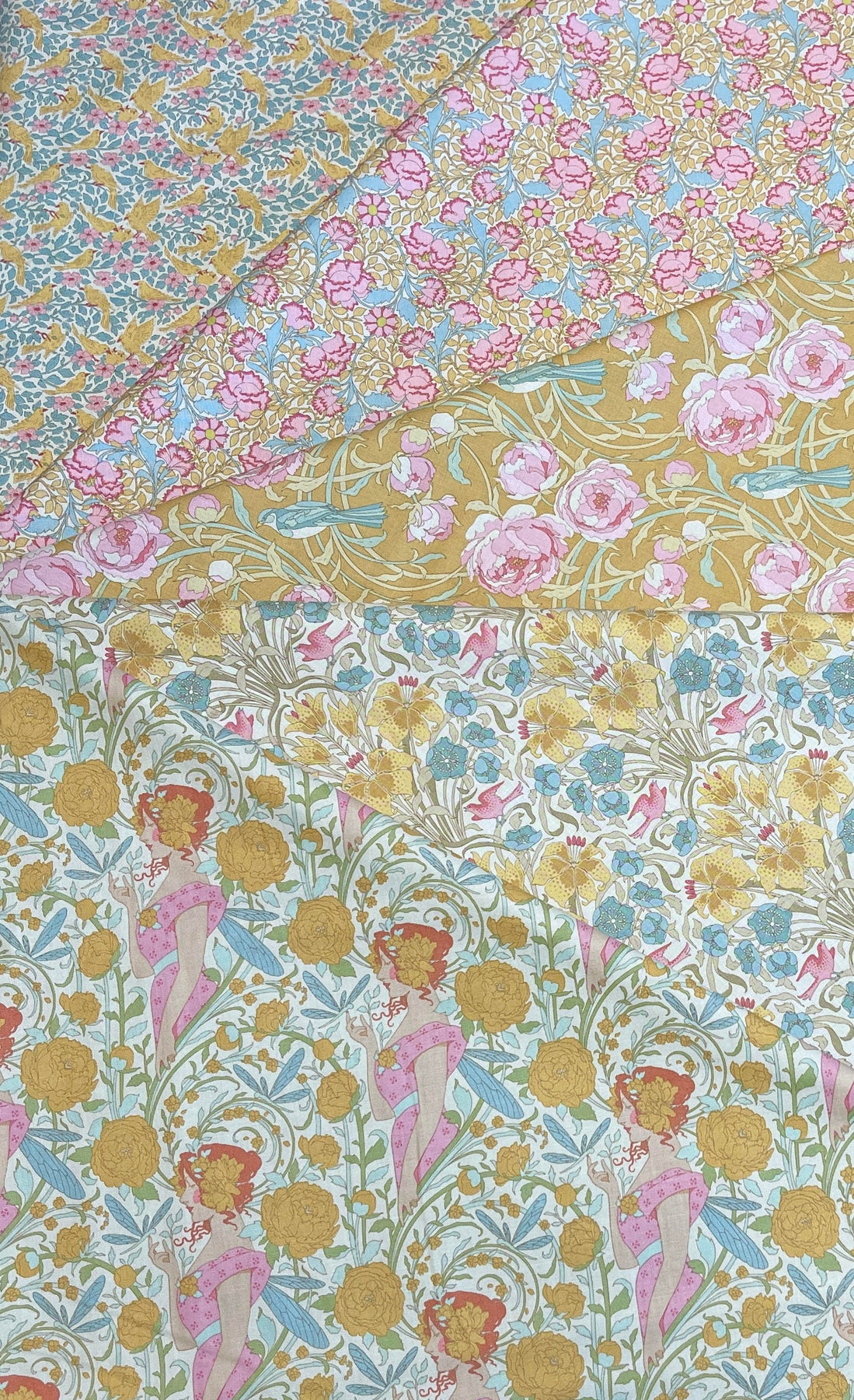 Tilda Songbird - 300255 - Fat Quarter Bundle - Mustard - 5 Pieces - 19.5" x 21"